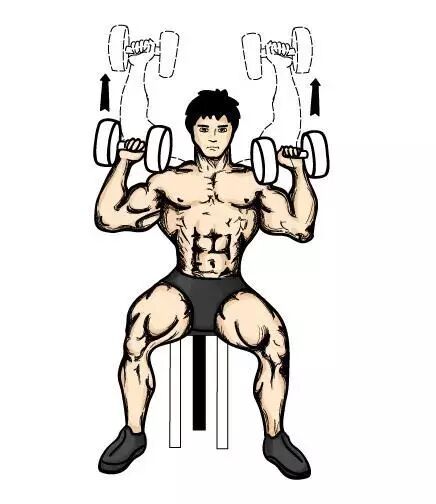 坐 姿 哑 铃 推 举 动 作 要 领 :