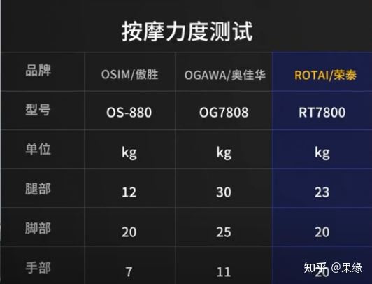 奥佳华OG7808整体按摩比较舒适,优势在手部、脚部和腿部,荣泰RT7800整体按摩的力度偏重,有一点点用力过猛,不过它的气囊数量达到了80个,按摩的手法也是最多。傲胜OS880整体力度适中,优势是V手按摩、腰部热敷,高端大气的奥佳华OGG7808和荣泰RT7800在技术方面体现了主流按摩椅的水平,配置非常齐全,而傲胜OS880则更加注重按摩的体验,身体按摩范围也是三款产品中最大的,热敷和安全也是加分项,我们认为这是我们这次评测当中最好的产品,也是我们这次评测当中体验综合评分最高的产品。选购的时候啊我觉得一定要去体验一下。