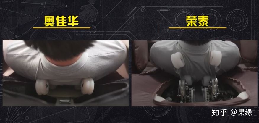 最后我们拆开了这三台按摩椅,按摩椅最大的奥秘就是机芯和导轨,通过机械手臂按摩头来进行按摩,再通过行走电机,揉捏电机、敲打电机、伸缩电机来控制机芯上按摩头的走向、力度和手法。奥佳华OG7808和荣泰RT7800的按摩头都是三d机芯,可以揉捏拍打等7个动作。傲胜OS880就是它的专利的V手科技,双头机芯可以模拟人手的提、拉、按、压的动作,最大程度的还原真人肩颈按摩的感受,它的臀腿部也有2个按摩头,模拟双人4手按摩,效率更高也更实用。
