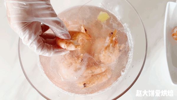 3、捞出煮熟的虾子,泡冰水,去虾皮