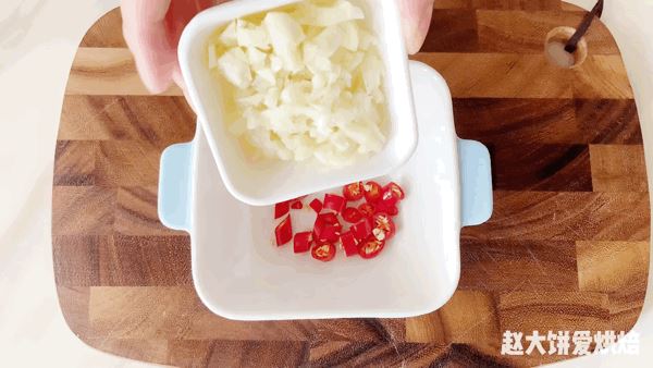 5、小米椒和蒜泥先用少量的热油烫出香味