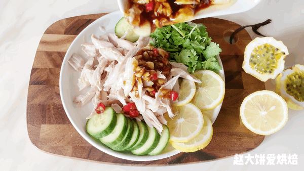8、百香果柠檬凉拌鸡肉的做法是一样的