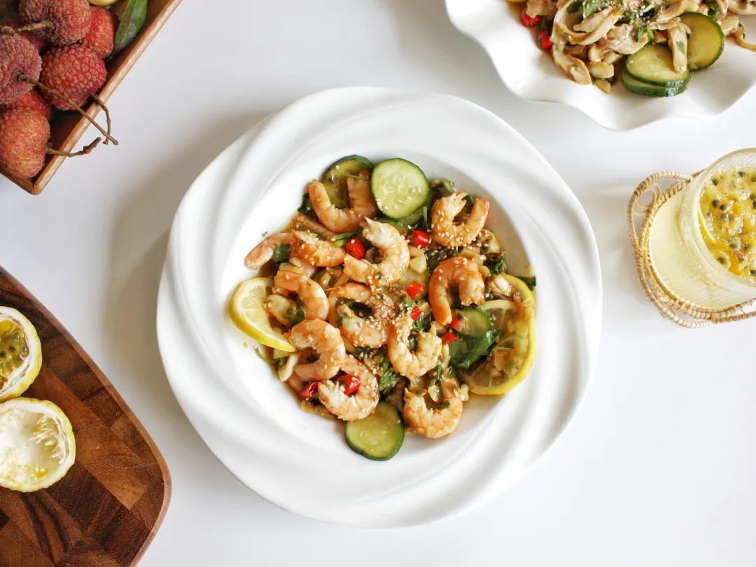 百香果柠檬凉拌虾仁