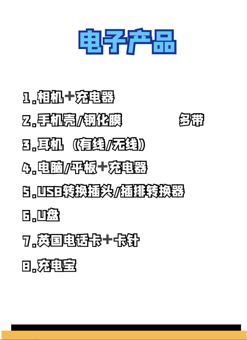 电子产品类(检查好充电器,不然你只是带了一堆砖头而已):
