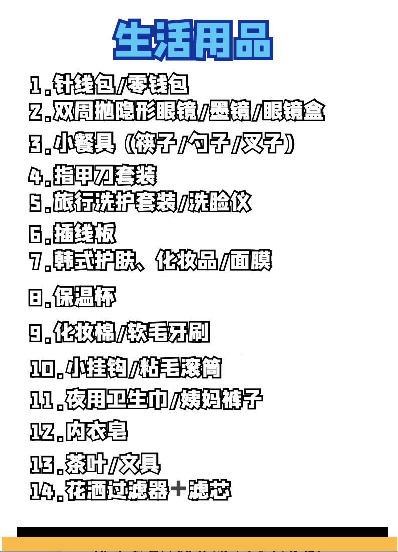 如果担心饮食不习惯可以带点火锅底料或者泡菜,暂时能想到的也就这么多了,后续在更新吧!