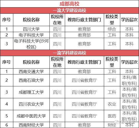 四川省5所“211工程”重点建设的大学中,有4所在成都:分别是四川大学、西南交通大学、西南财经大学和电子科技大学。