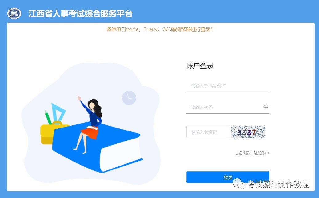 2、点击左侧报名入口,进入《江西省人事考试综合服务平台》,注册账号并登录