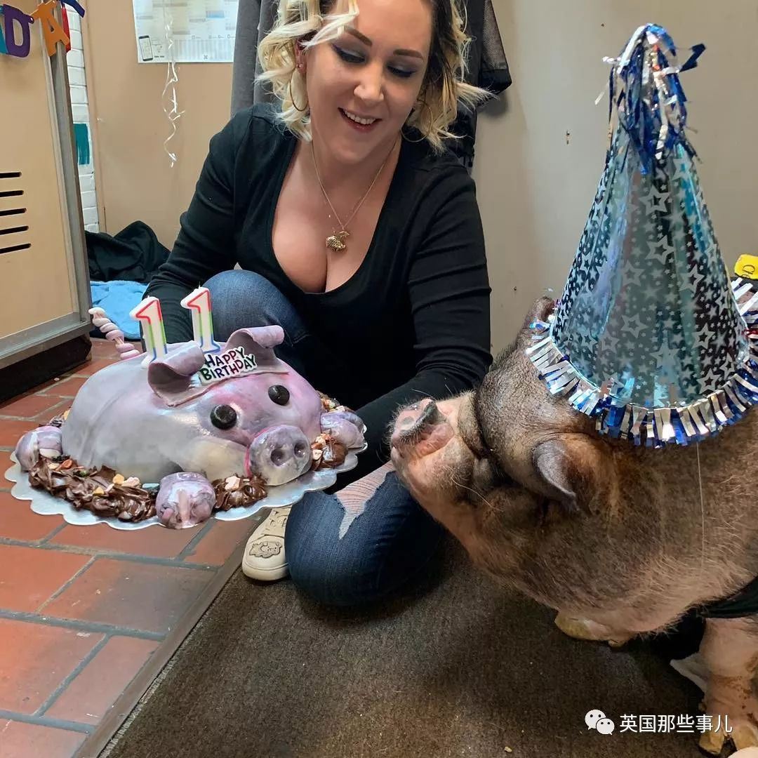 铲屎官Lauren特意为这个大家伙准备了生日蛋糕: