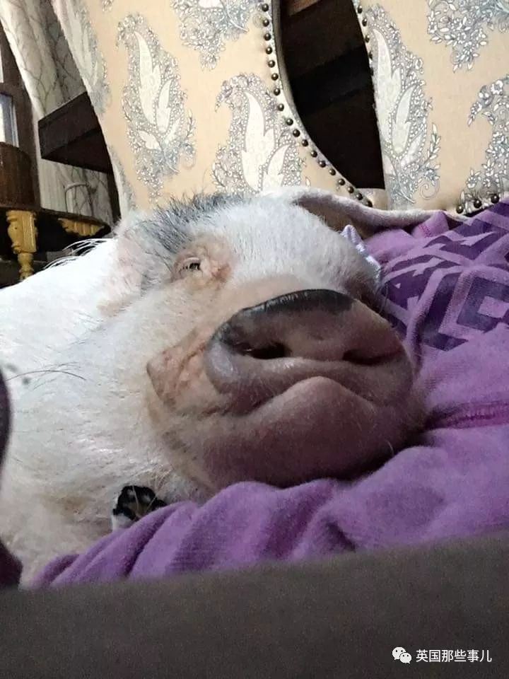 除了自家的这个大胖墩,Nicole在后来也收养了一只被抛弃的猪猪: