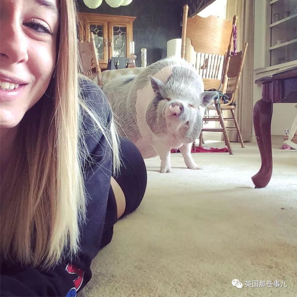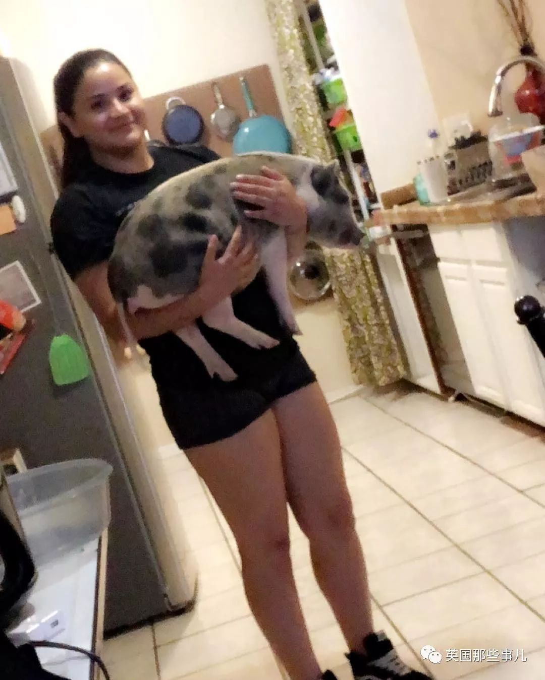 除了从小长大的Bacon之外,她甚至还从别人手中收养了一只因为越长越大而被抛弃的猪猪。