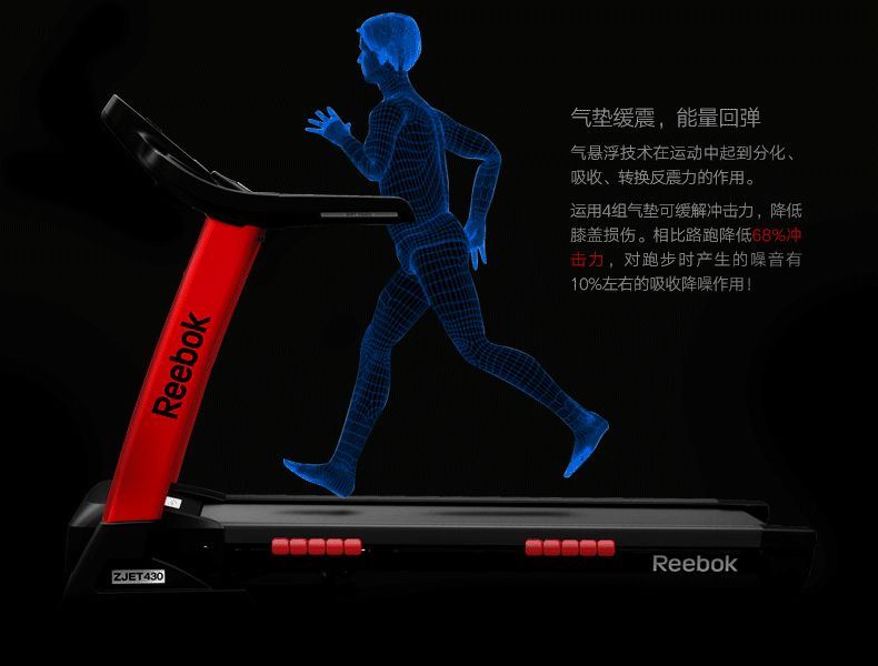 锐步这一款,同样是放大版的JET100,硬件升了一大截,马力升级(2->2.5),最高时速升级(16->20),跑带升级(45*130->51*150),适合更多的人群。同时还升级了控制面板,添加了风扇。而且软件也没有删掉!连接APP,路径选择,数据追踪,分享训练!