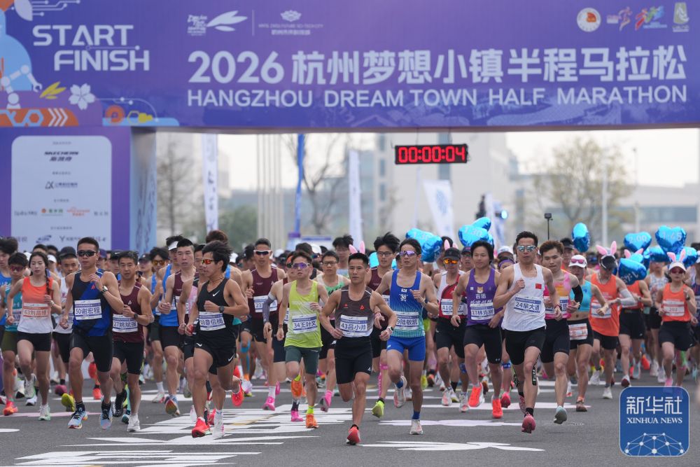 3月29日,2026杭州梦想小镇半程马拉松在浙江省杭州市余杭区鸣枪开跑。